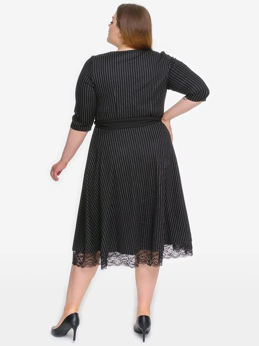 Платье с расклешенной юбкой из джерси, черный в полоску