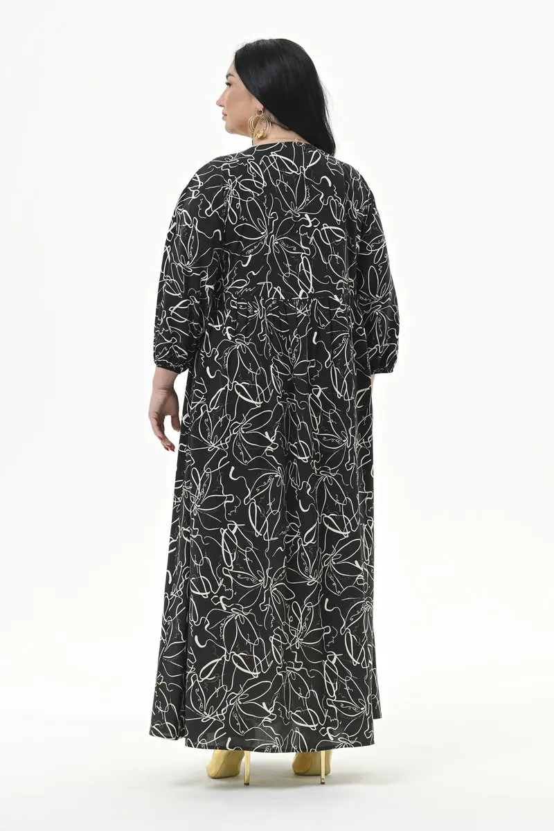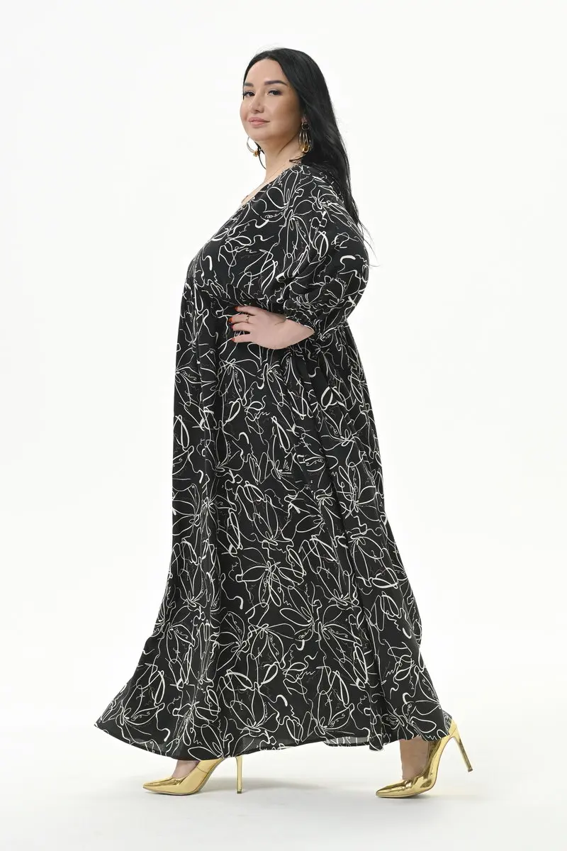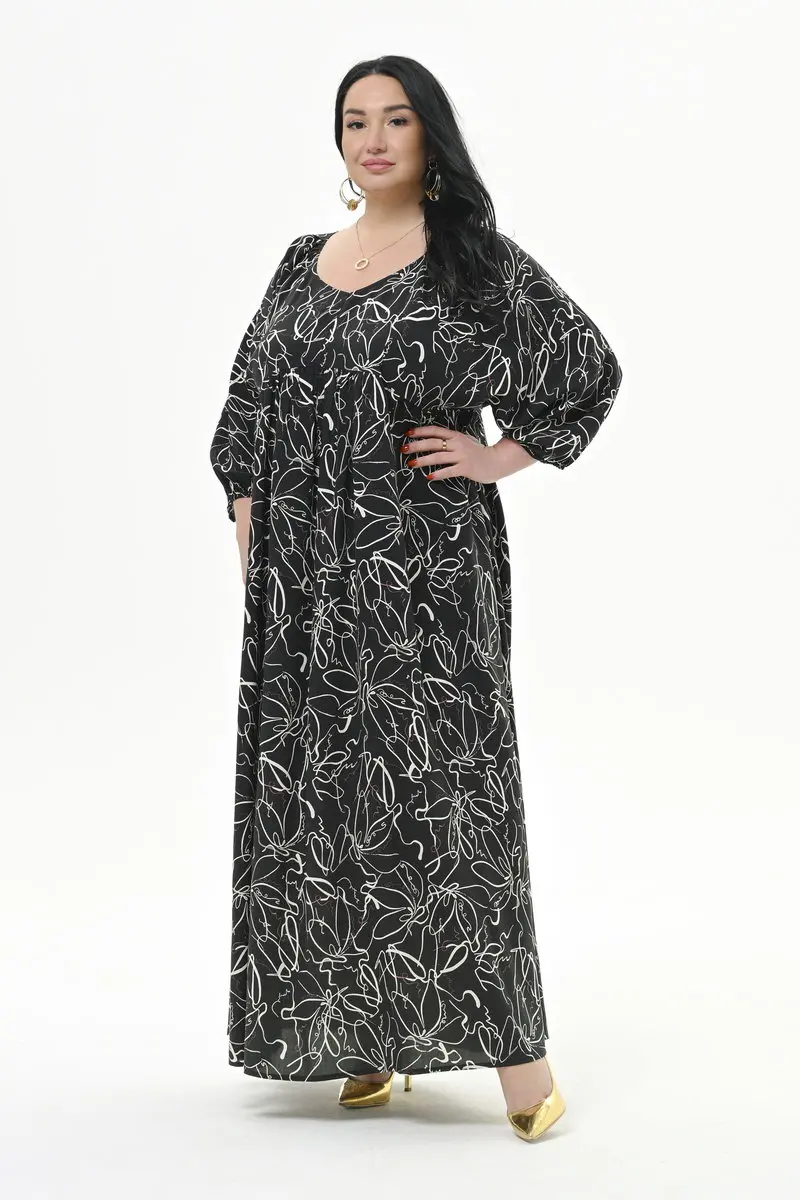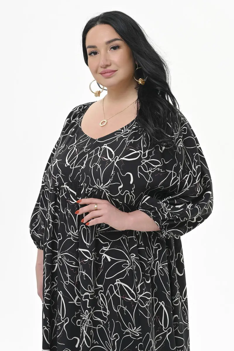 > Платье свободное из штапеля, черное, принт "футуризм"