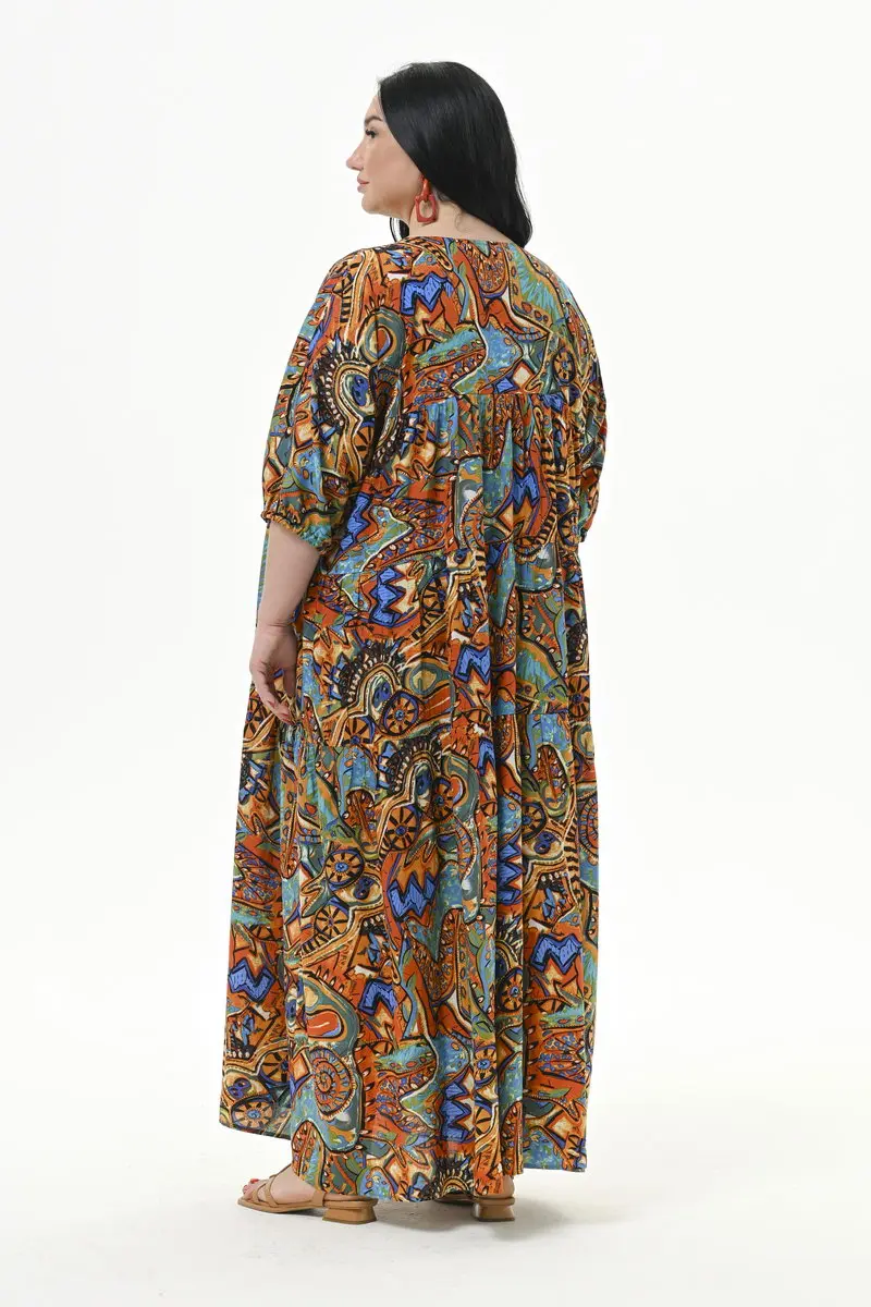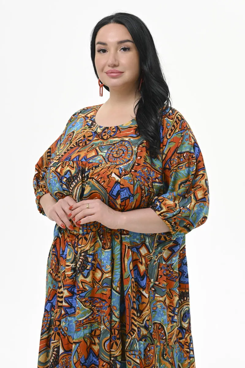 Платье каскадное из вискозы, принт "яркая абстракция"