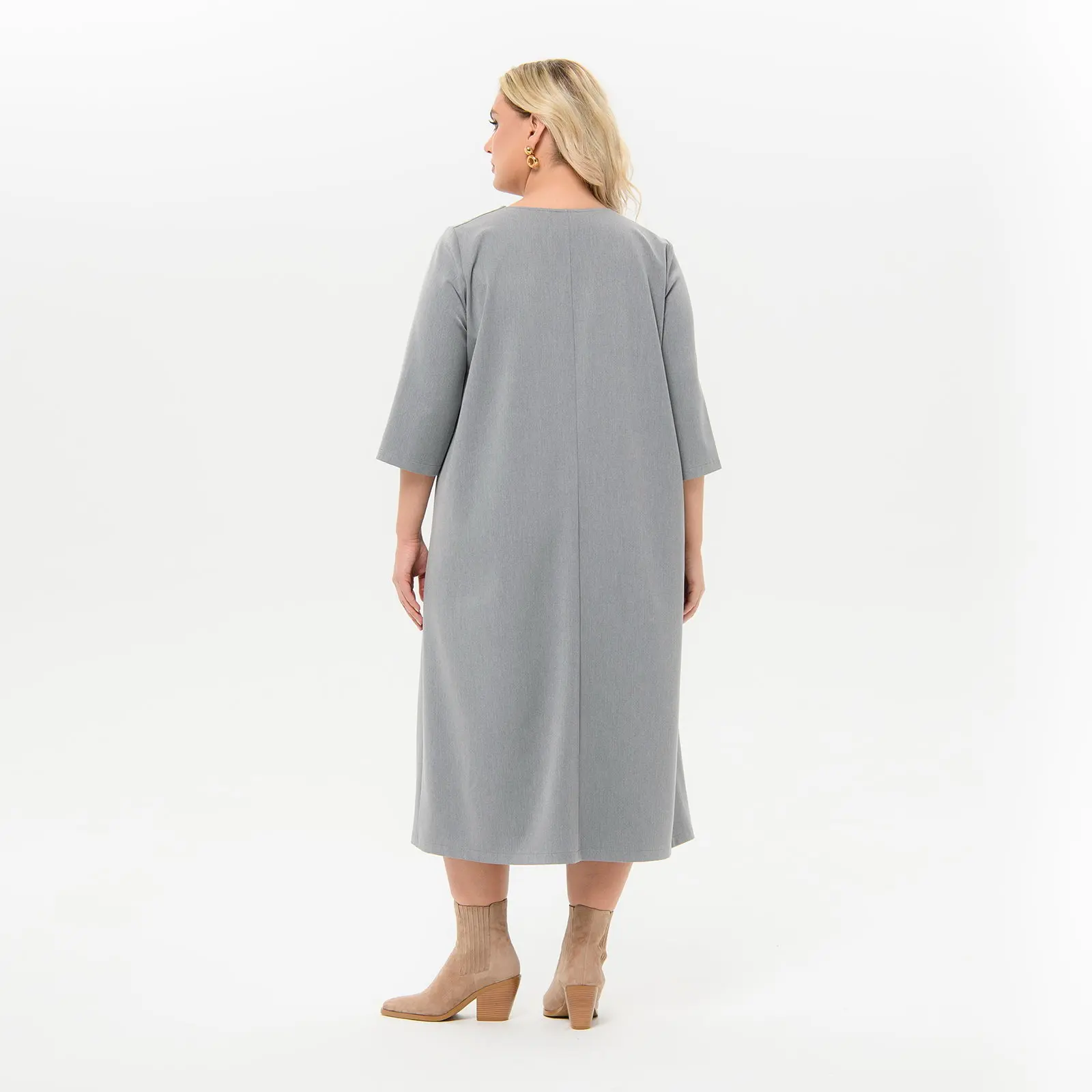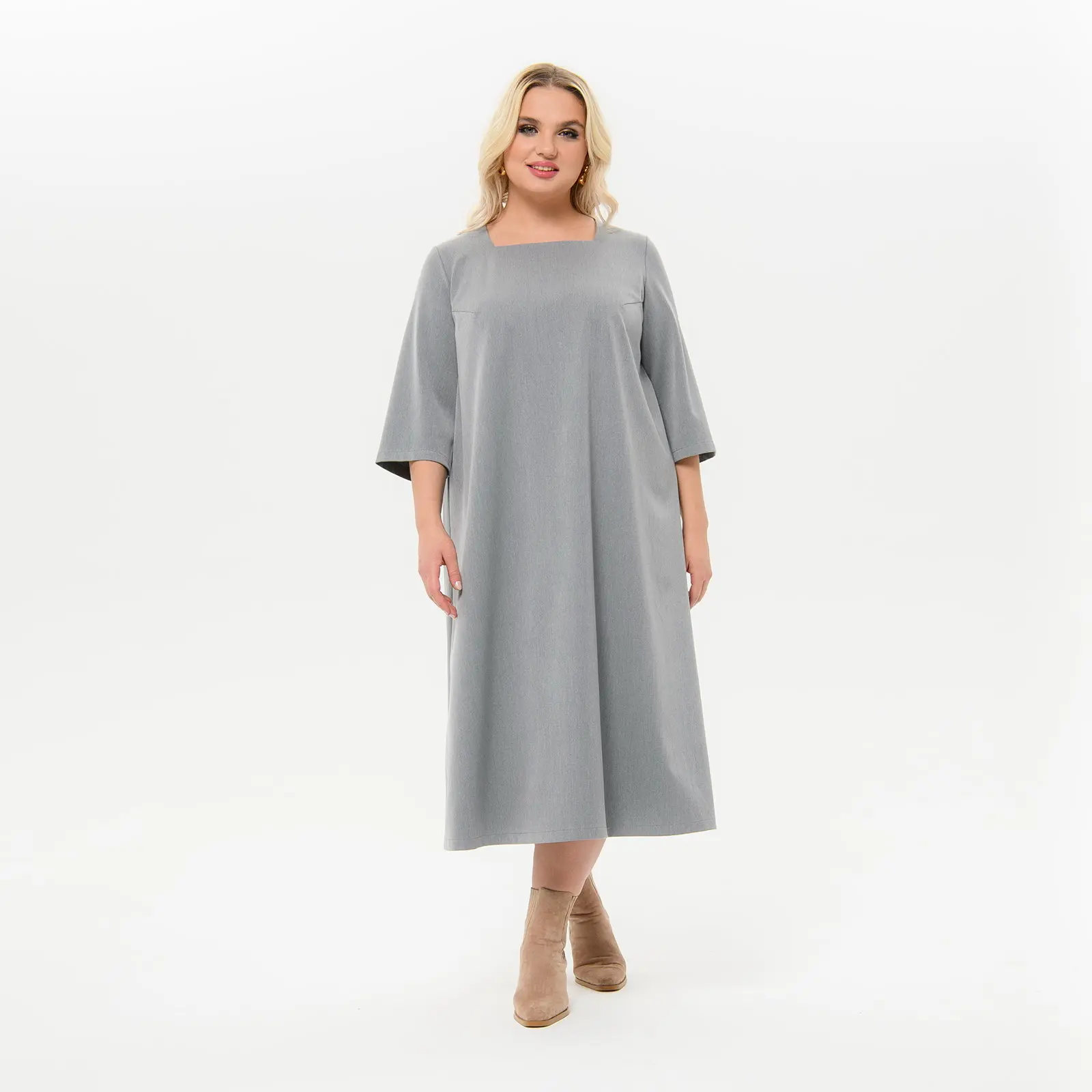 > Платье миди с вырезом "каре", из костюмной ткани, цвет "платиново-серый"