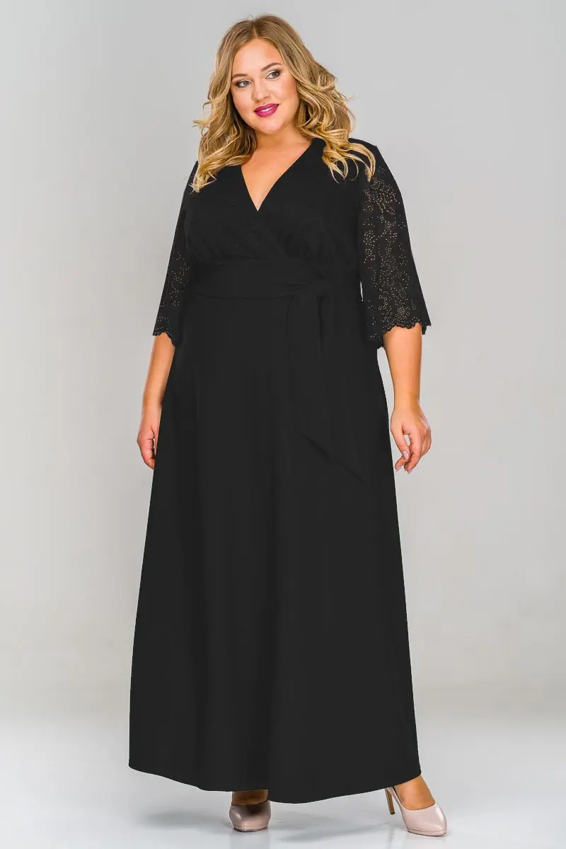 Элегантное длинное вечернее платье из крепа с эластаном, Лиф дублирован кружевом, на запАх. Рукав расклешенный