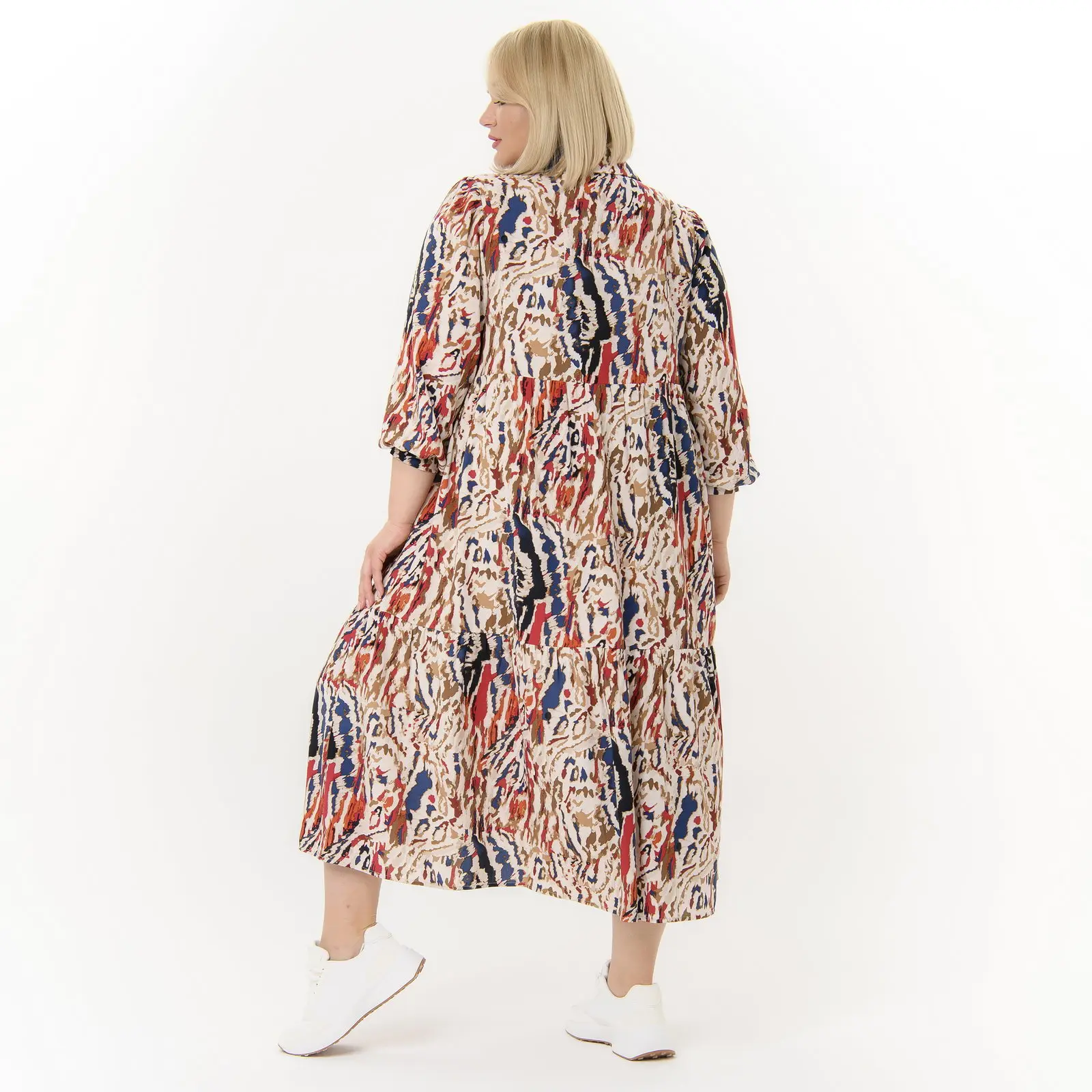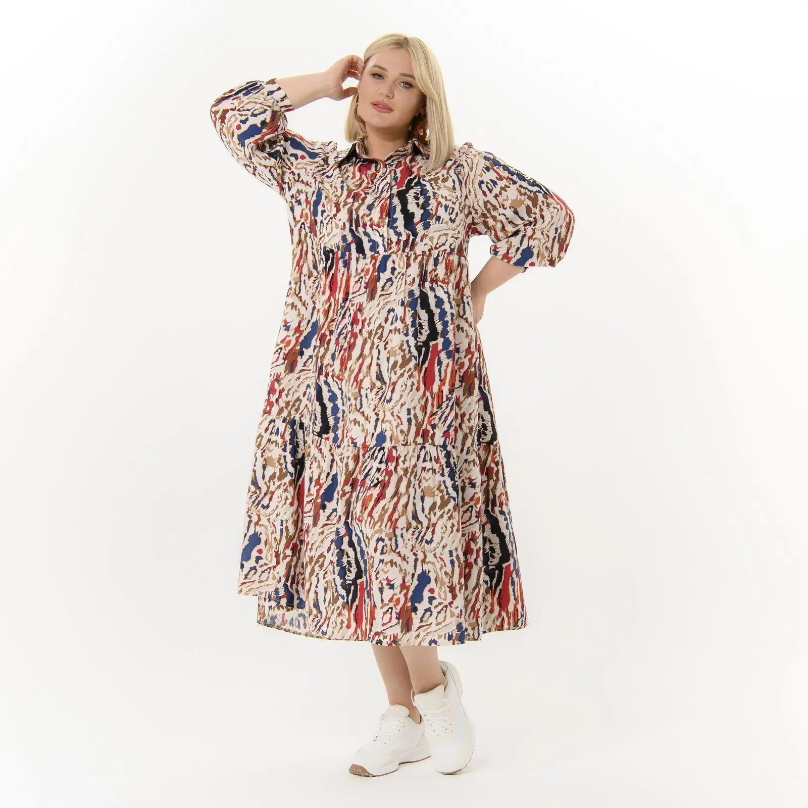 Платье из штапеля свободного силуэта. Отрезное по линии груди, нижняя часть платья присборена.