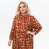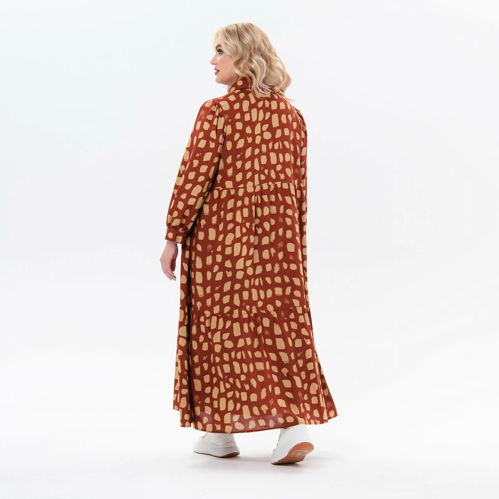 Платье-рубашка каскадное из штапеля, принт "бежевые пятнышки"