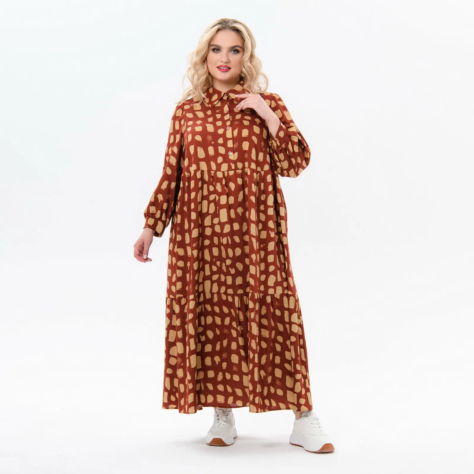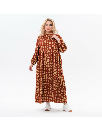 > Платье-рубашка каскадное из штапеля, принт "бежевые пятнышки"