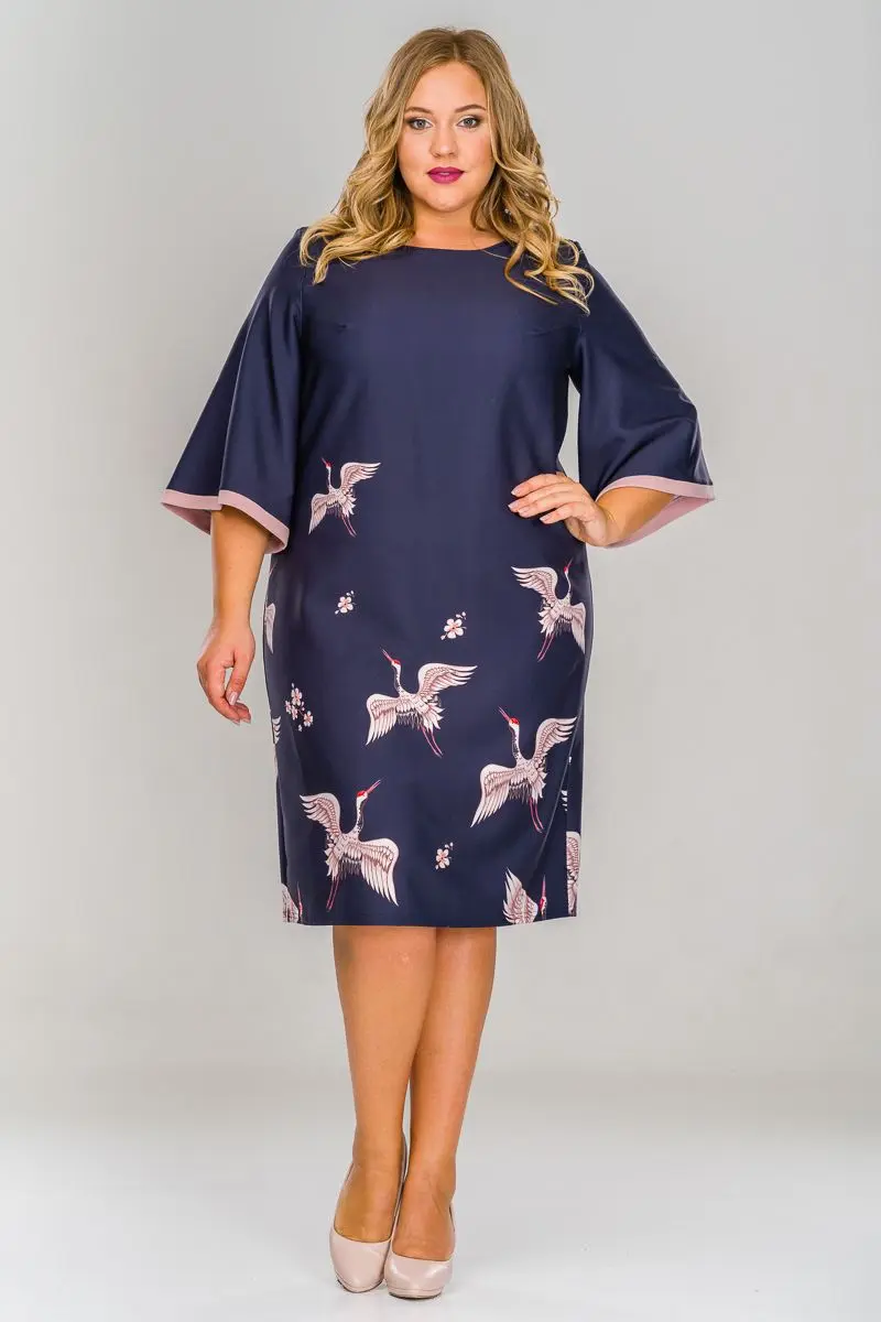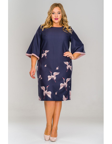 > Платье базовое с широкими рукавами, принт журавли