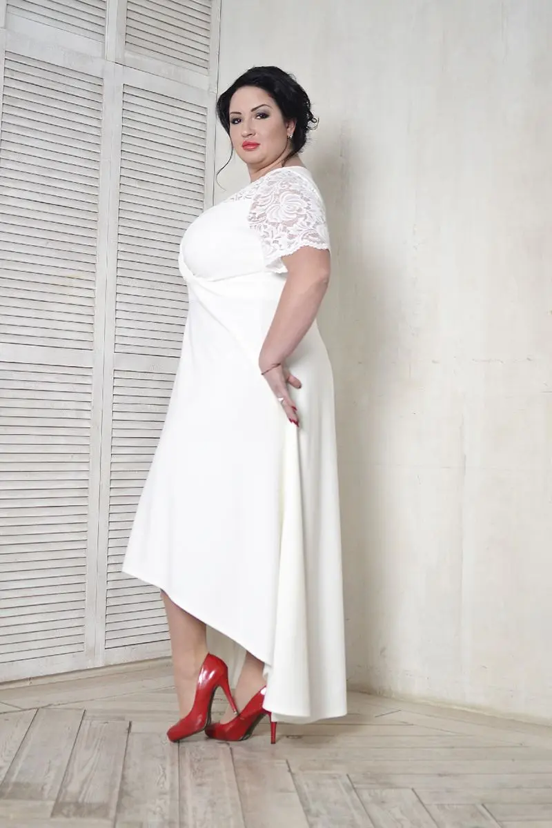 Платье вечернее-свадебное с кружевной кокеткой белого цвета
