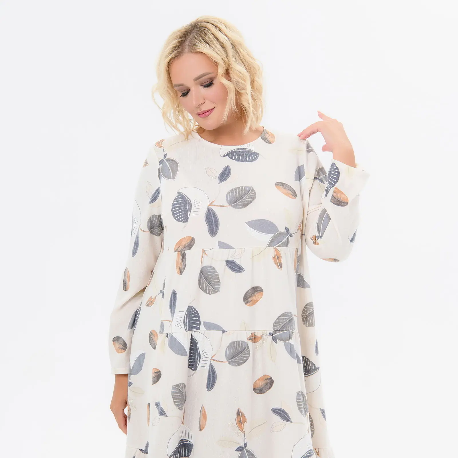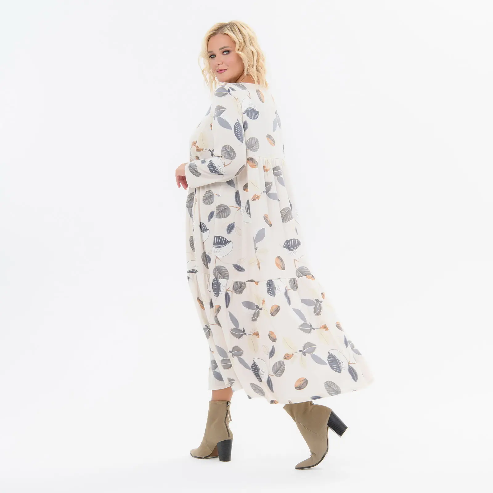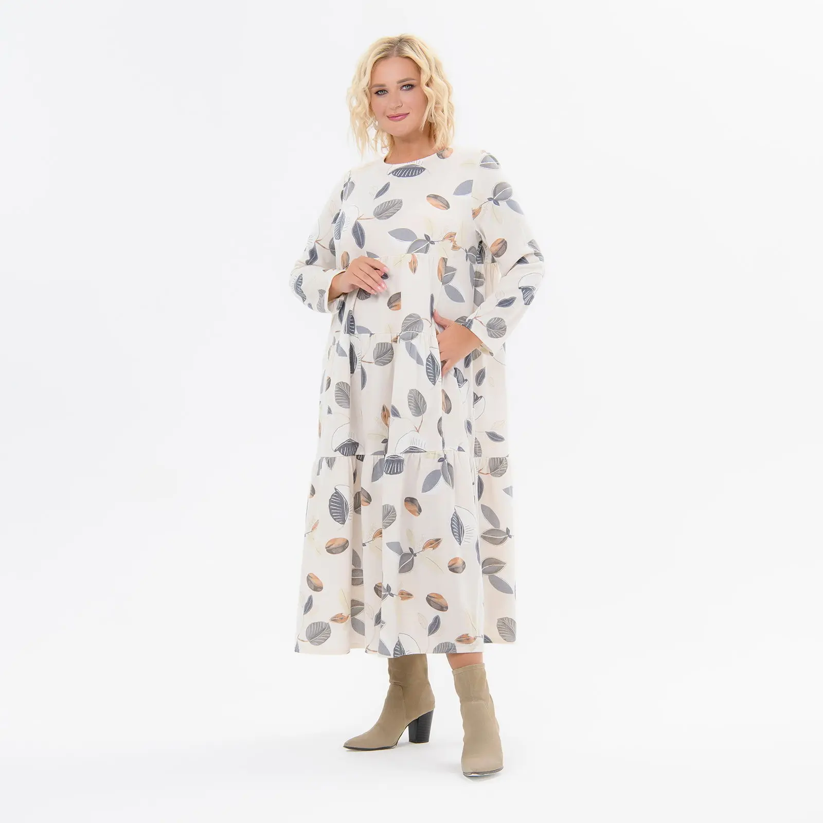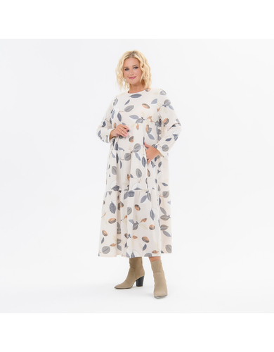 > Платье каскадное, с карманами, ангора, принт молочный