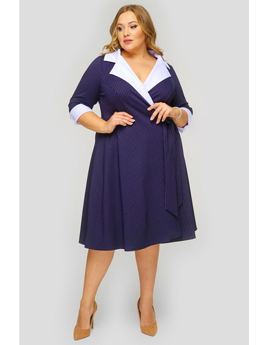 > Платье с запАхом, джерси темно-синее в полоску, с белой отделкой