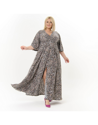 > Платье длинное, с разрезом спереди, принт "леопардовый"