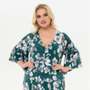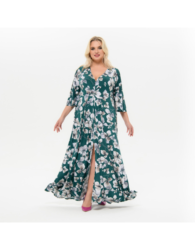 > Платье длинное, с разрезом спереди, изумрудное, принт цветочный