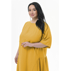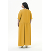 Платье длинное, свободного силуэта, из плотной плательной ткани. Нижняя часть платья отрезная, присборенная. Линия подреза по переду фигурная, по спинке горизонтальная. В швах подрезов обработаны карманы. Рукав втачной, свободный.
