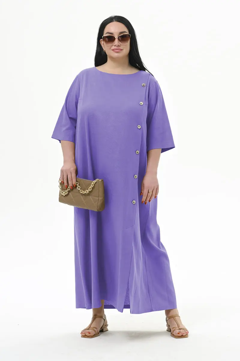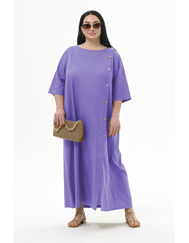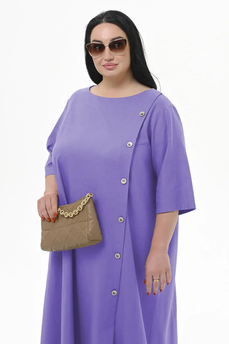Платье А-силуэта из льна, с декоративной планкой по переду, лавандовое