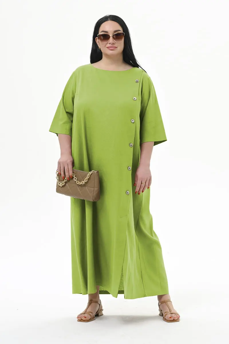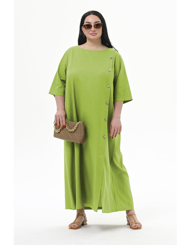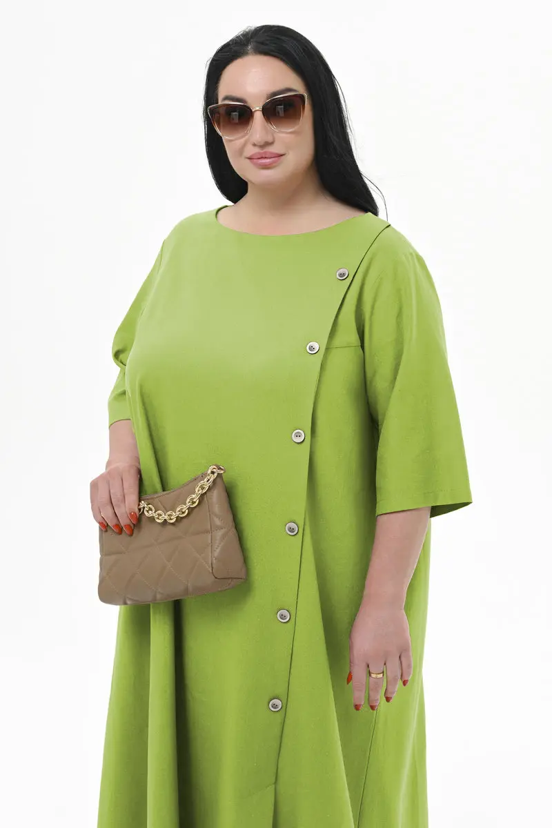 Платье А-силуэта из льна, с декоративной планкой по переду, цвет "яркий салатовый"
