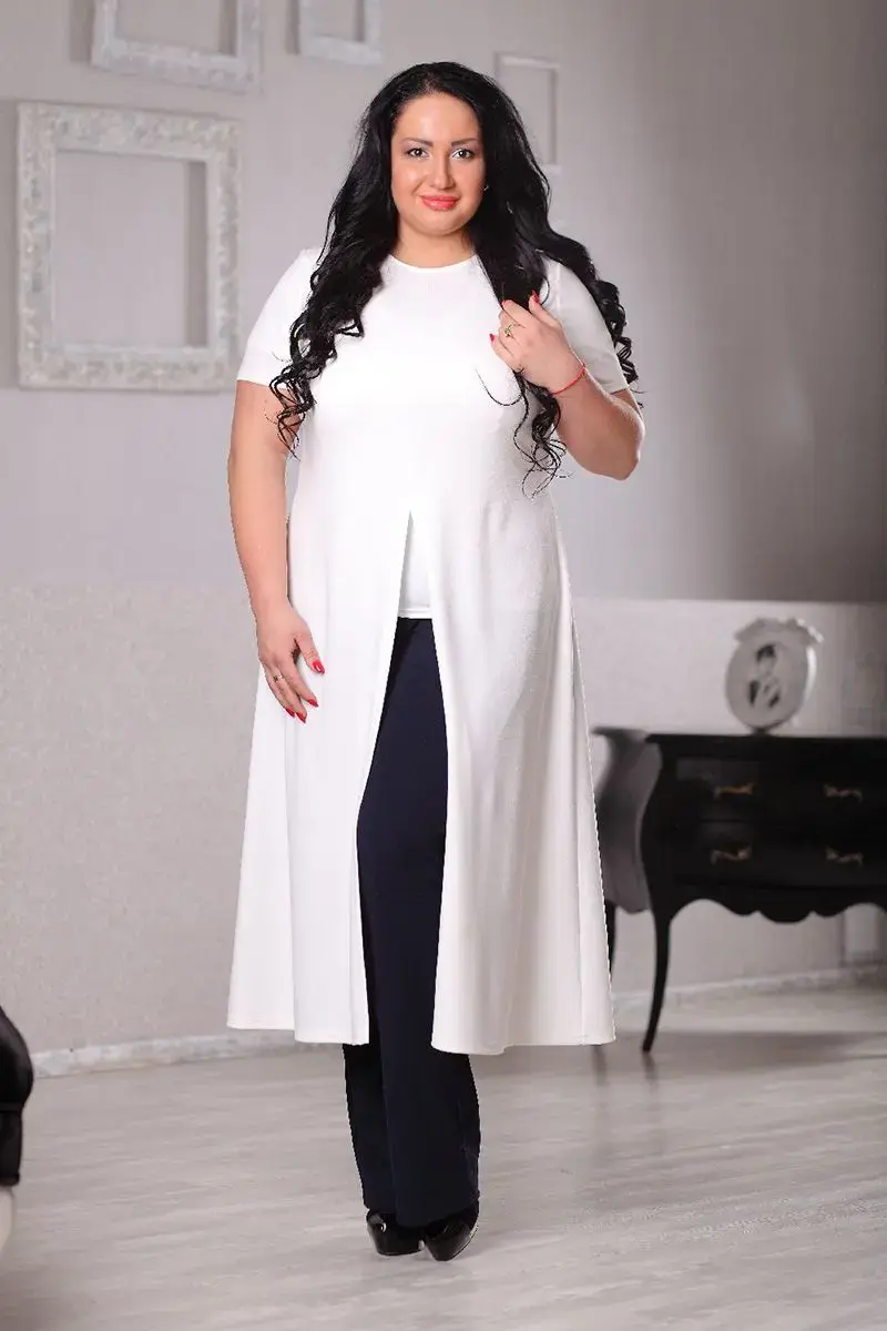 Удлиненная туника А-силуэта из крепа. Туника станет прекрасным дополнением Вашего гардероба, т. к. сочетается с любым его элементом. В нем Вы будете чувствовать себя комфортно, а выглядеть стильно и неотразимо.