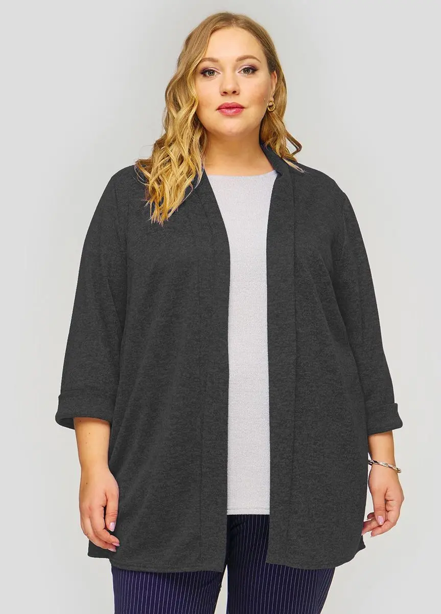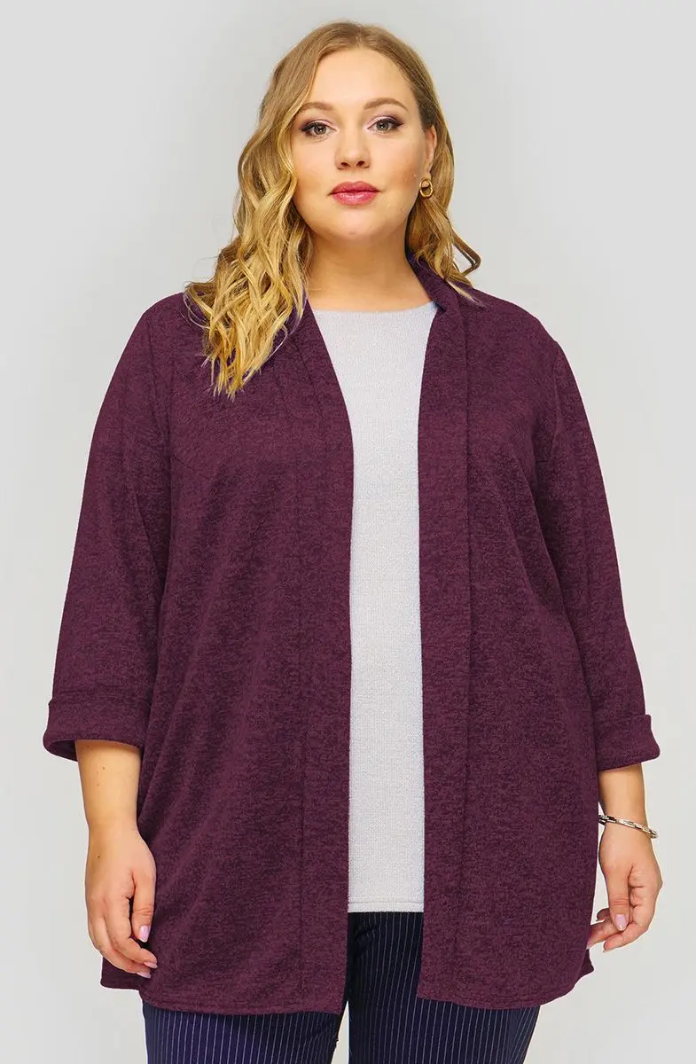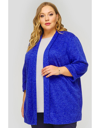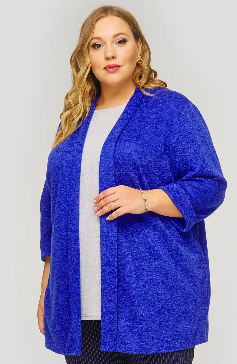 Жакет прямого силуэта из меланжевого джерси с эластаном. По бортам и низу рукавов притачные отвороты.
