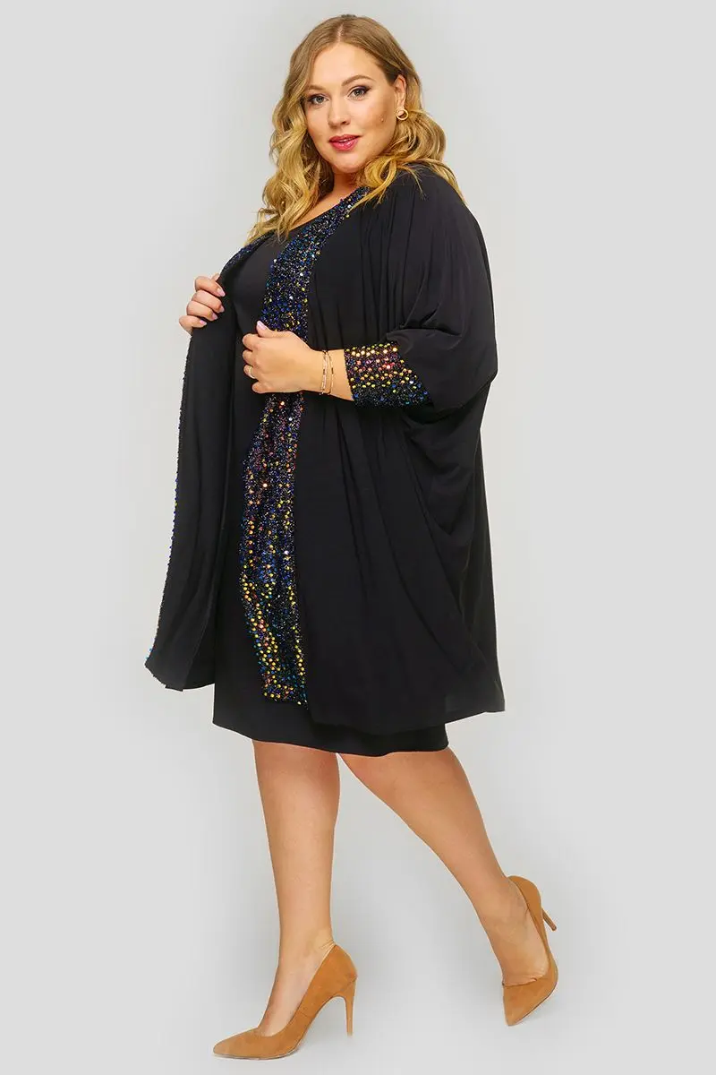 Кардиган "летучая мышь" из черного трикотажа, манжеты и борта из пайеток