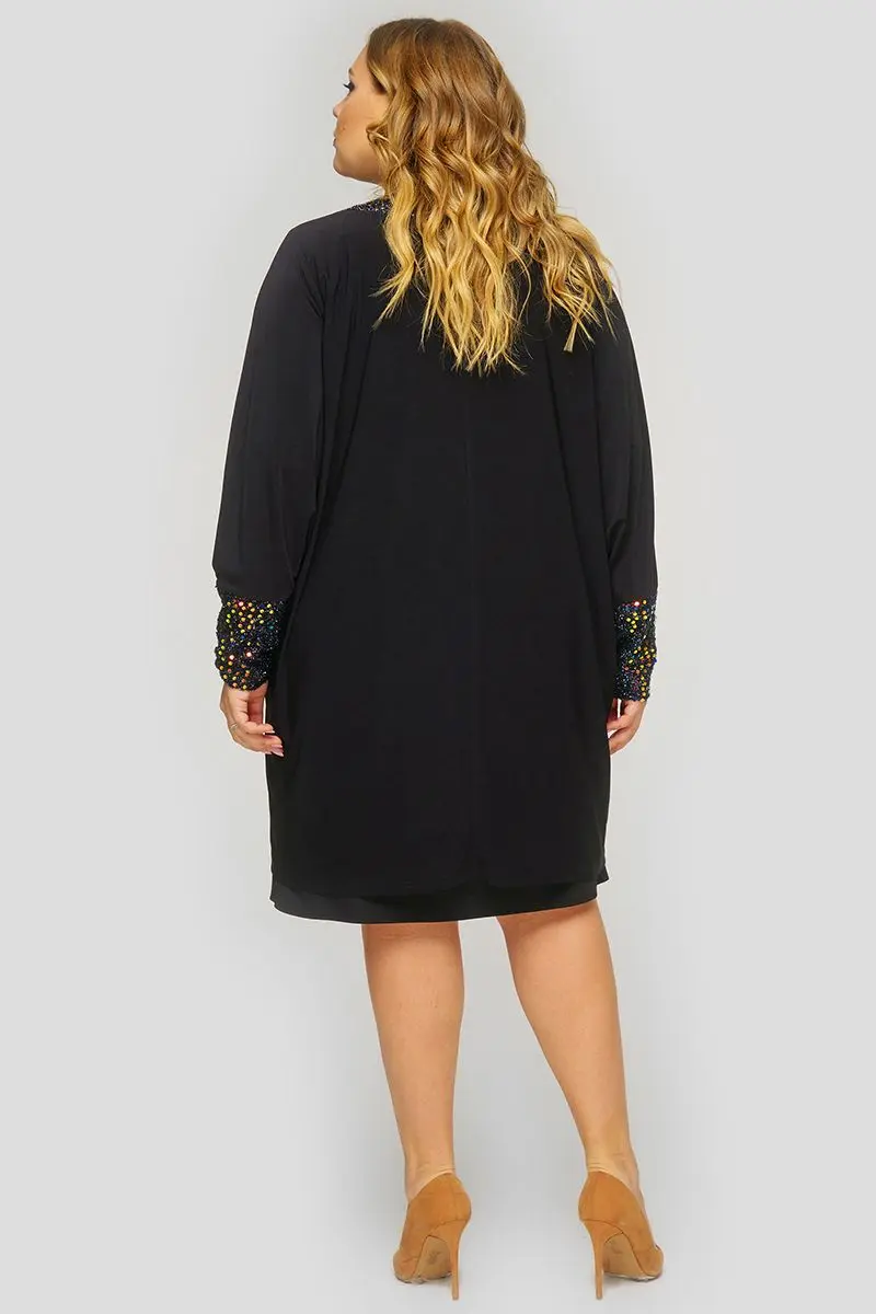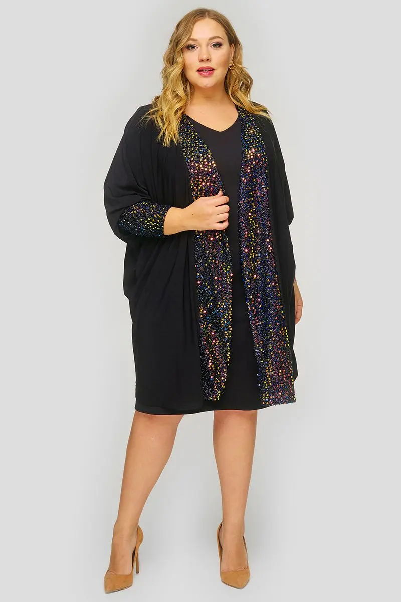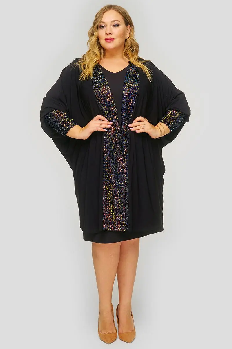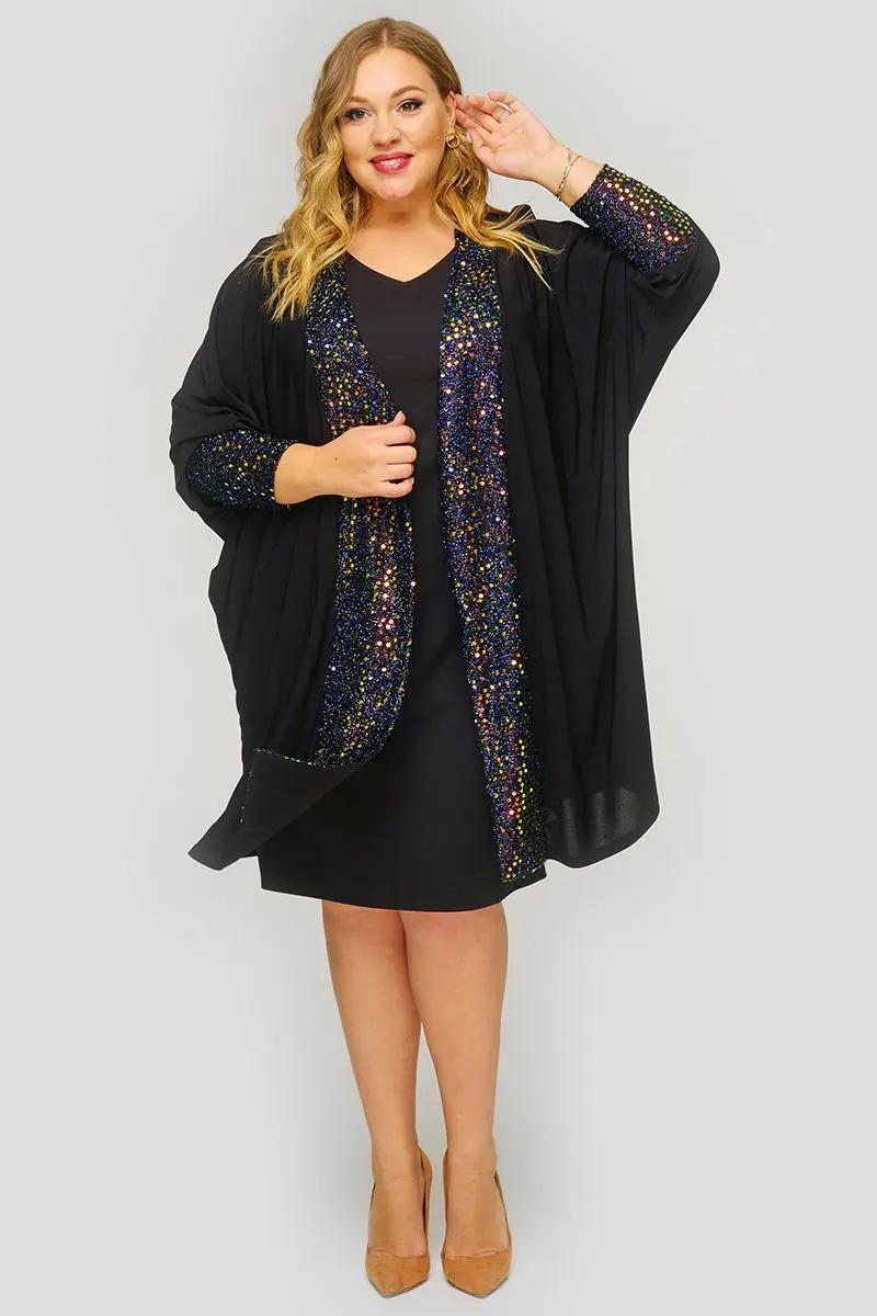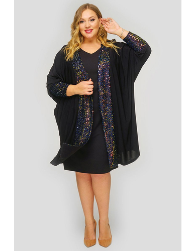 > Кардиган "летучая мышь" из черного трикотажа, манжеты и борта из пайеток