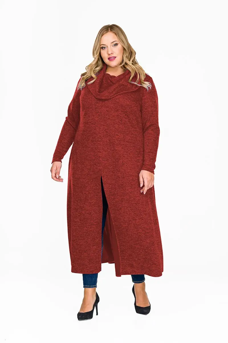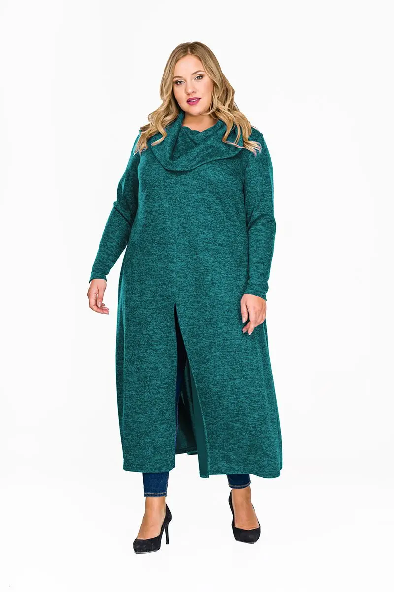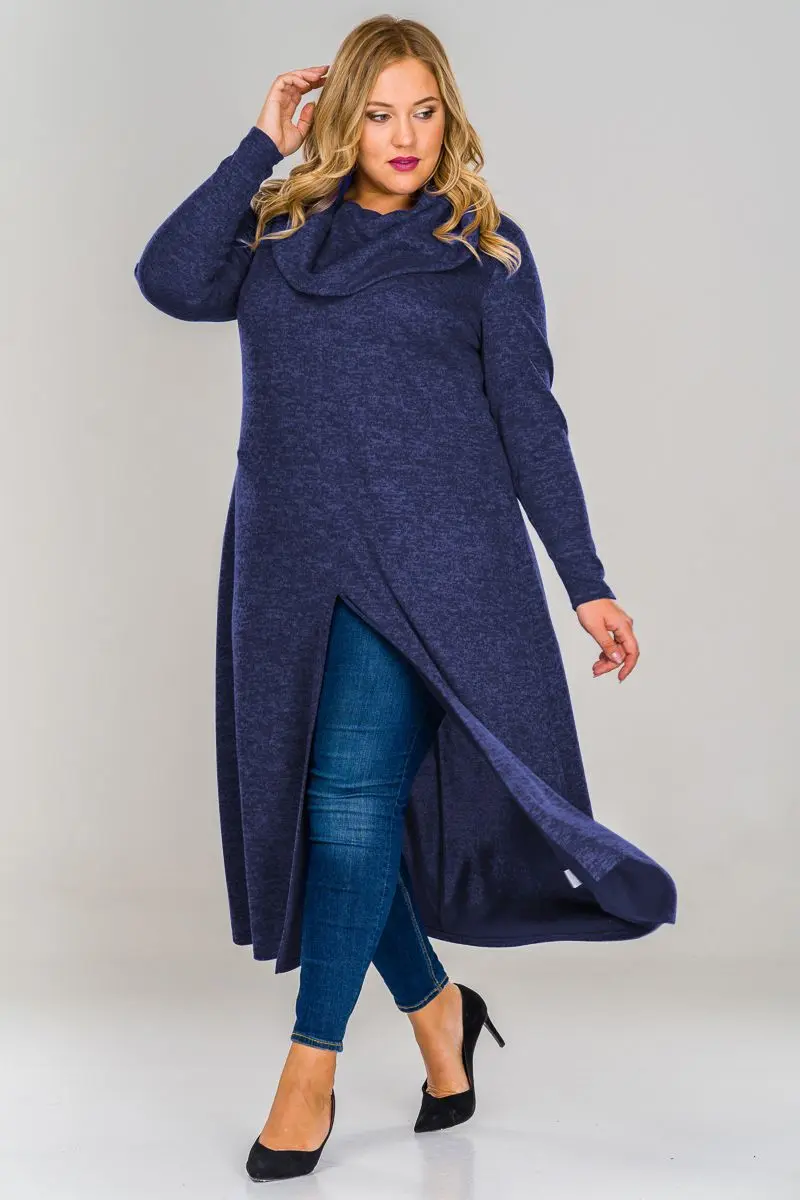 Удлиненная туника А-силуэта с длинным рукавом и воротником "хомут" из джерси. Туника станет прекрасным дополнением Вашего гардероба, т. к. сочетается с любым его элементом. В нем Вы будете чувствовать себя комфортно, а выглядеть стильно и неотразимо.