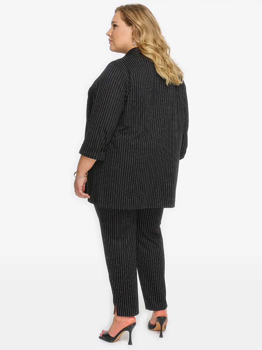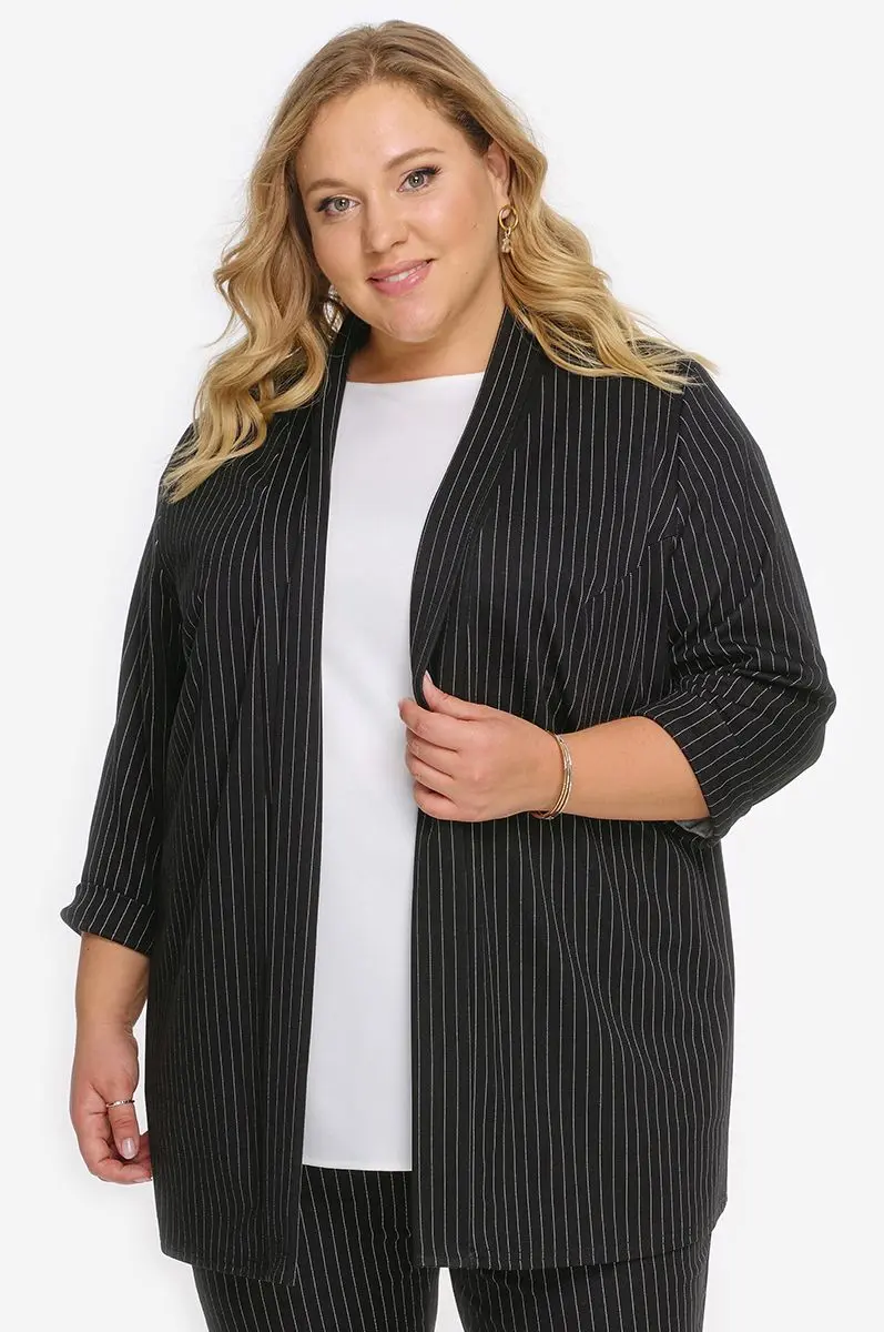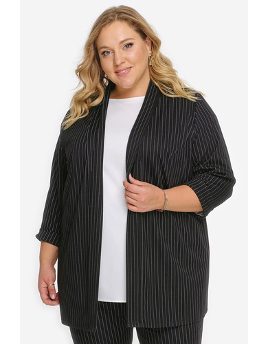 Жакет прямого силуэта из джерси с эластаном. По бортам и низу рукавов притачные отвороты.