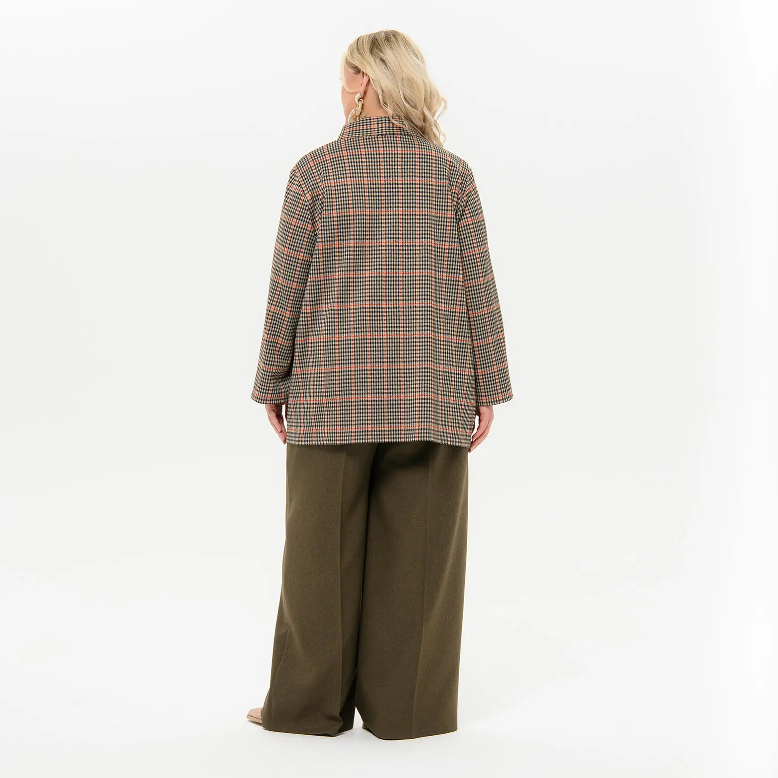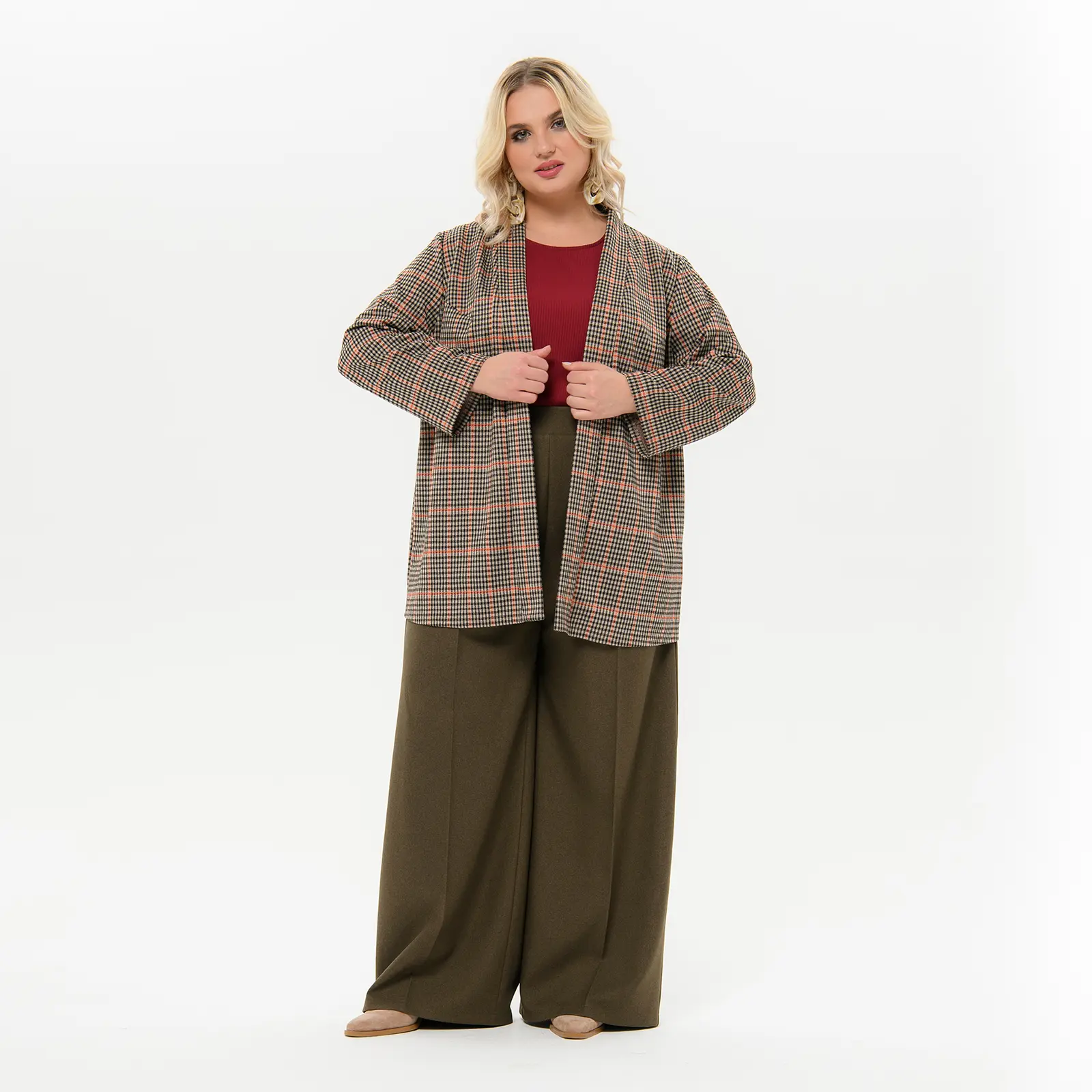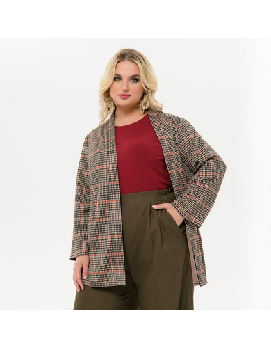 Жакет прямого силуэта из плотного трикотажного джерси в клетку. По бортам притачные отвороты.