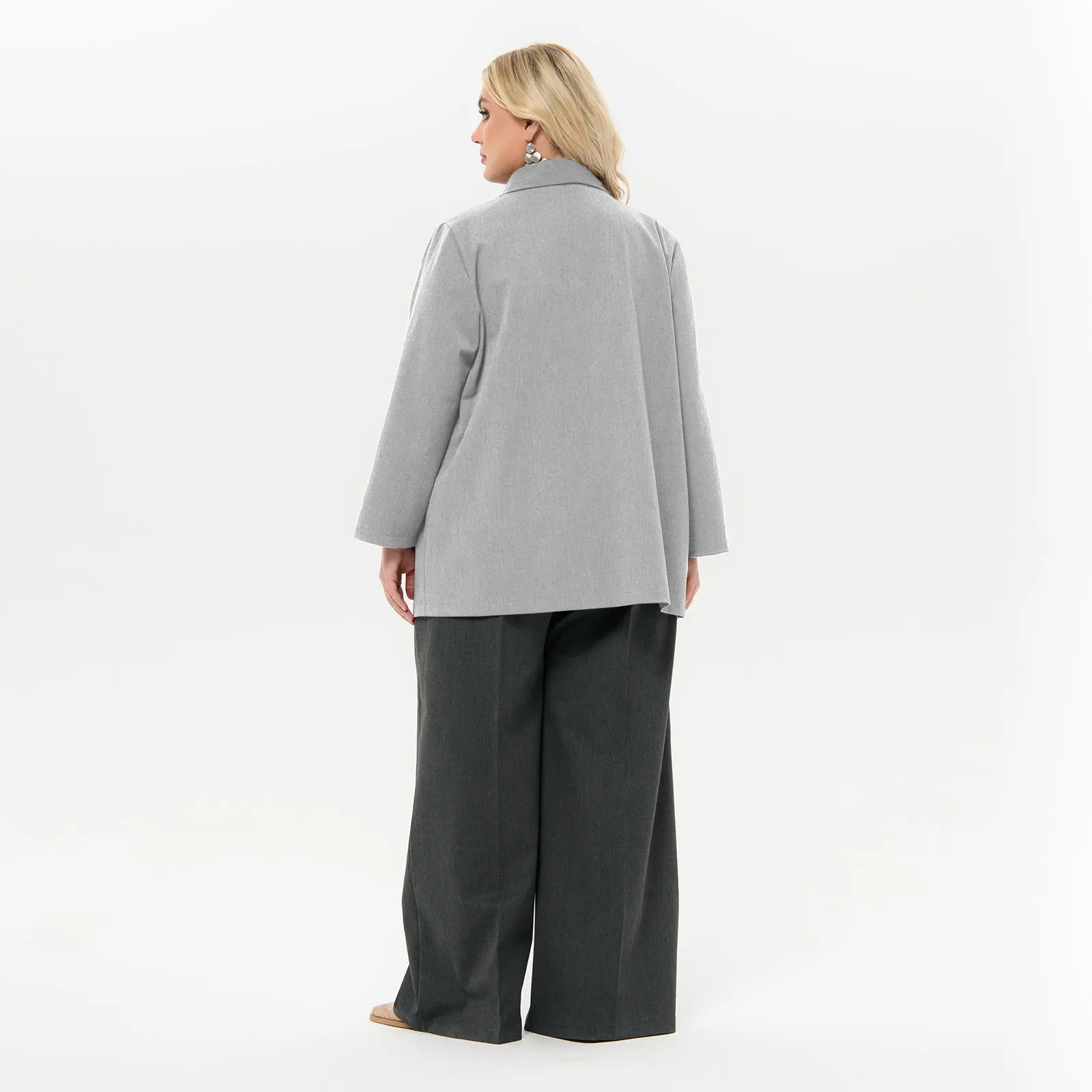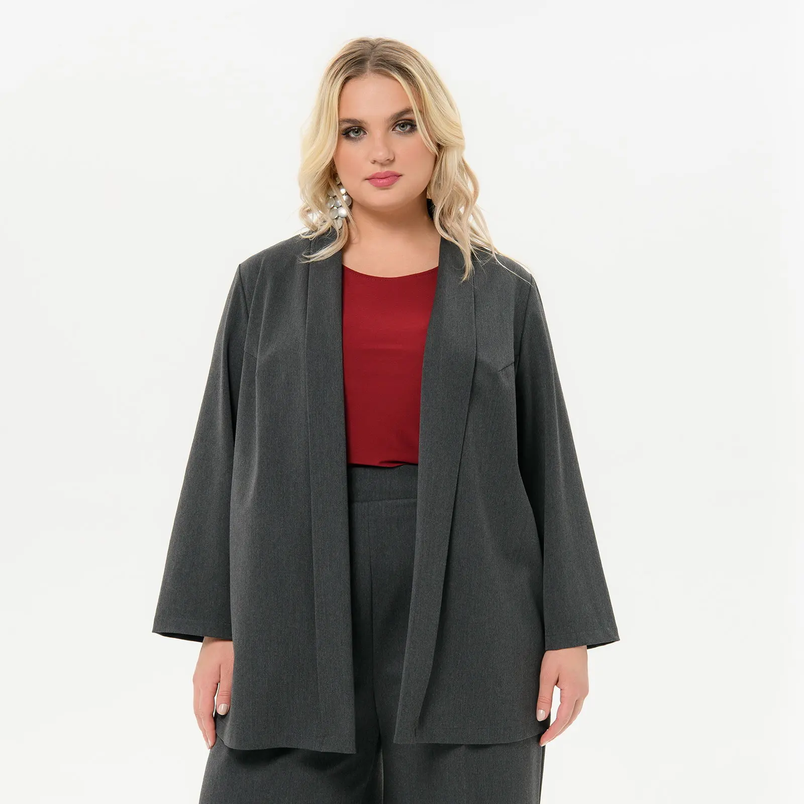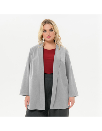 Жакет прямого силуэта из плотной костюмной ткани с эластаном. По бортам притачные отвороты.