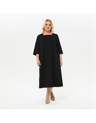 Платье миди с вырезом "каре", из костюмной ткани, цвет черный