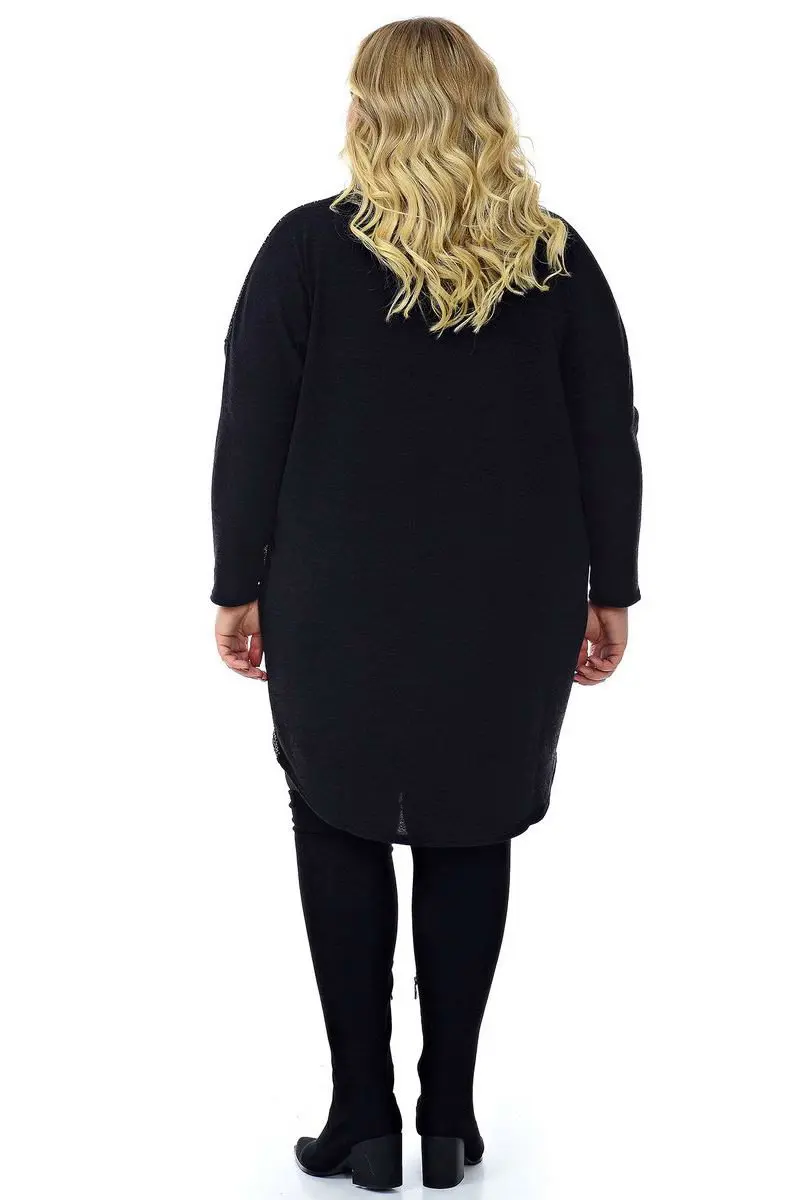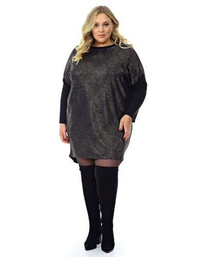 Короткое платье - туника из искусственной ангоры силуэта "кокон". Рукав на основе цельнокроеного. Вырез горловины округлый. Линия низа плавно переходит со спинки на переднюю часть, составляя разницу 8 см.
