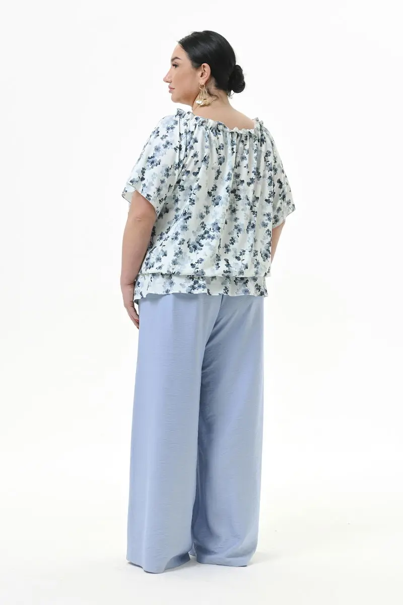 > Туника со сборочкой по горловине, штапель, принт "цветочная дымка"