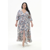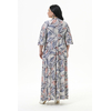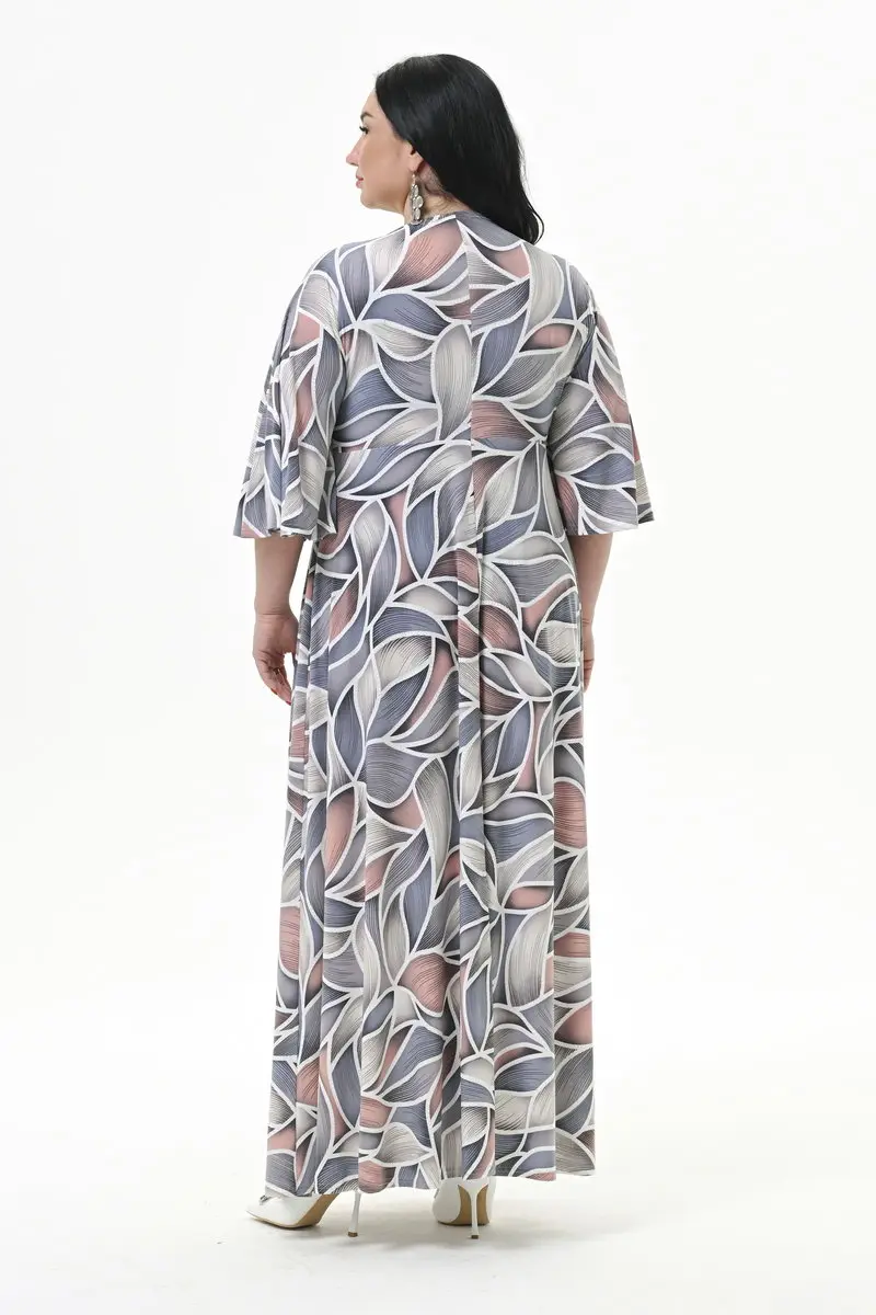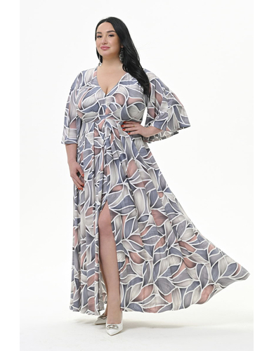 > Платье длинное, с разрезом спереди, принт "серо-коралловый"