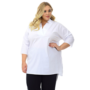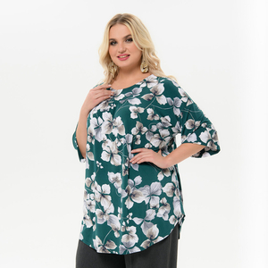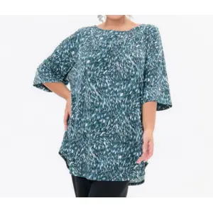 Туника с округлой обтачкой горловины, штапель "зеленая абстракция"