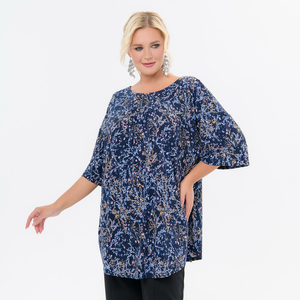 Туника удлиненная асимметричная из штапеля, принт "восточный"