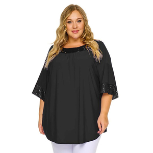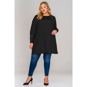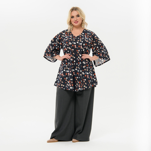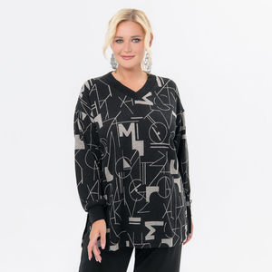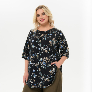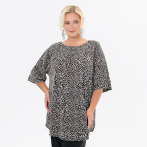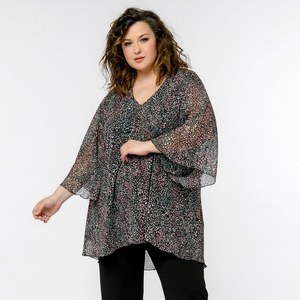 Туника свободная с асимметричной линией низа, шифон черный с мелким принтом