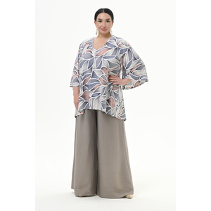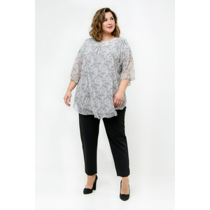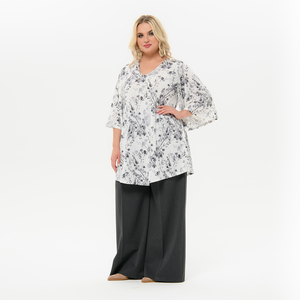 Туника свободная с асимметричной линией низа, шифон принт "теплый серый"