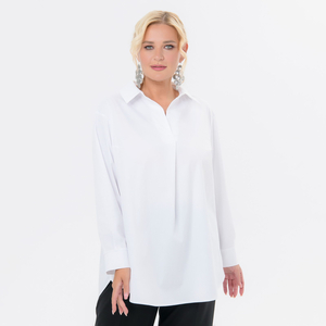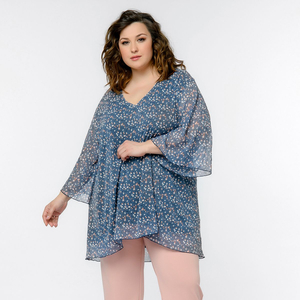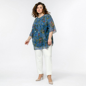 Туника свободная с фигурной кокеткой, шифон васильковый