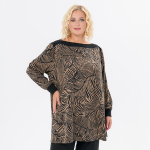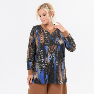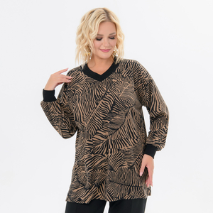 Туника с планками по горловине, ангора принт "каштаново - черный"