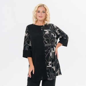 Туника удлиненная асимметричная, штапель, принт "черно-белый"