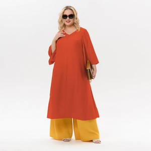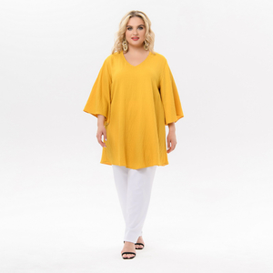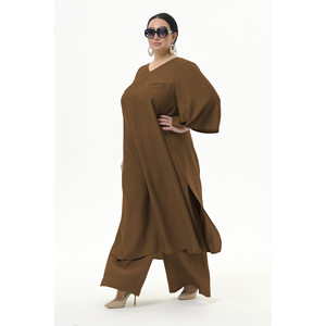 Туника длинная с разрезами из фактурной вискозы,цвет "корица"