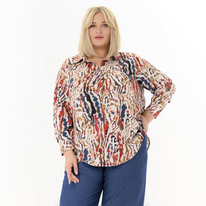 Туника свободная с асимметричным низом, принт "серо-коралловый"
