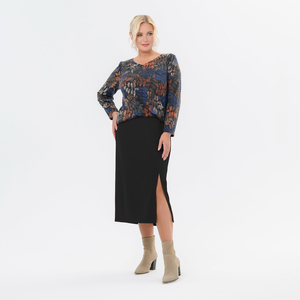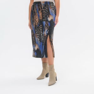Юбка с разрезом, джерси - ангора, принт "фантазия"