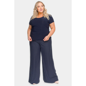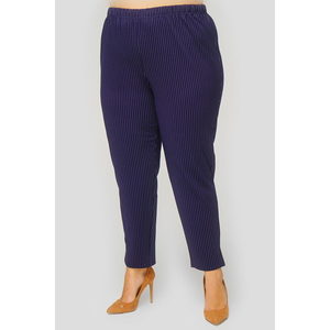 Брюки зауженные 7/8 из темно-синего джерси в полоску