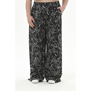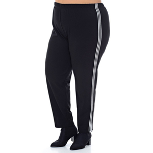 Брюки с карманами, прямые, из джерси, черные в полоску