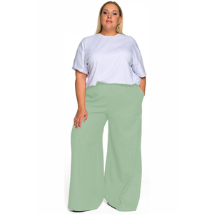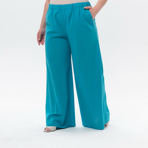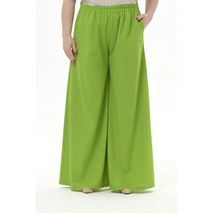 Брюки широкие из льна с карманами, цвет "яркий салатовый"