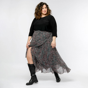 Юбка с воланом на подкладке, шифон черный с мелким принтом