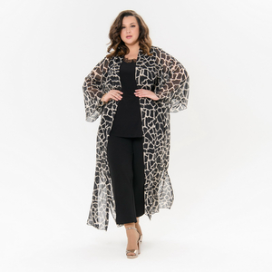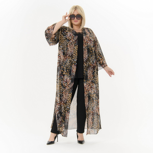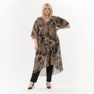 Туника многоуровневая, трикотаж черный/ шифон принт "леопард"