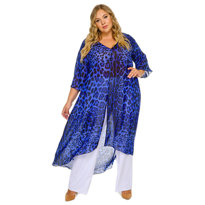 Туника удлиненная асимметричная, шифон принт "синий леопард"