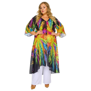 Туника многоуровневая, шифон принт "россыпь цветов"