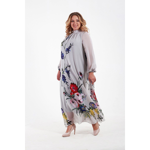 Туника свободная, шифон, принт цветочный, фон графитовый