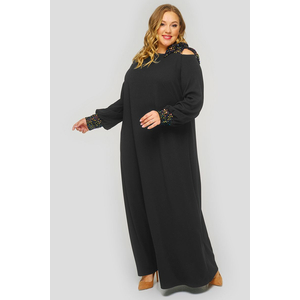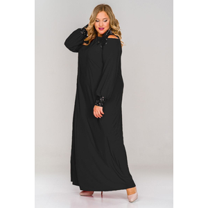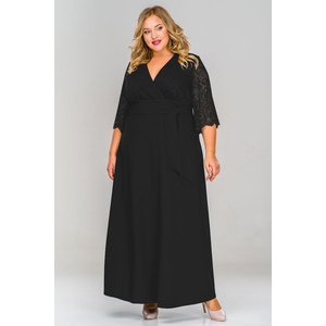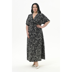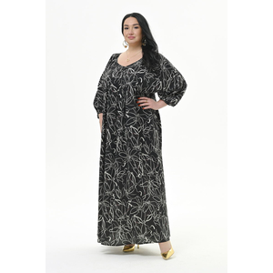 Платье длинное с V - вырезом и воланом по низу, штапель черно-белый