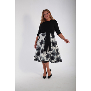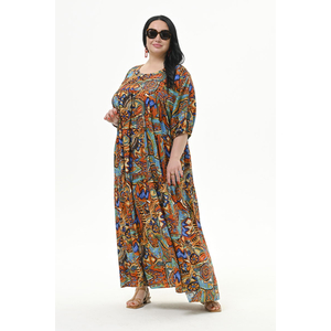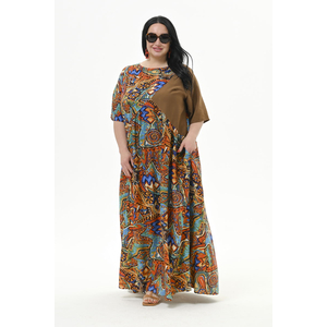 Платье комбинированное из вискозы, принт "яркая абстракция", отделка "корица"