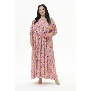 Платье из штапеля с воланом по горловине, принт "фиалки"